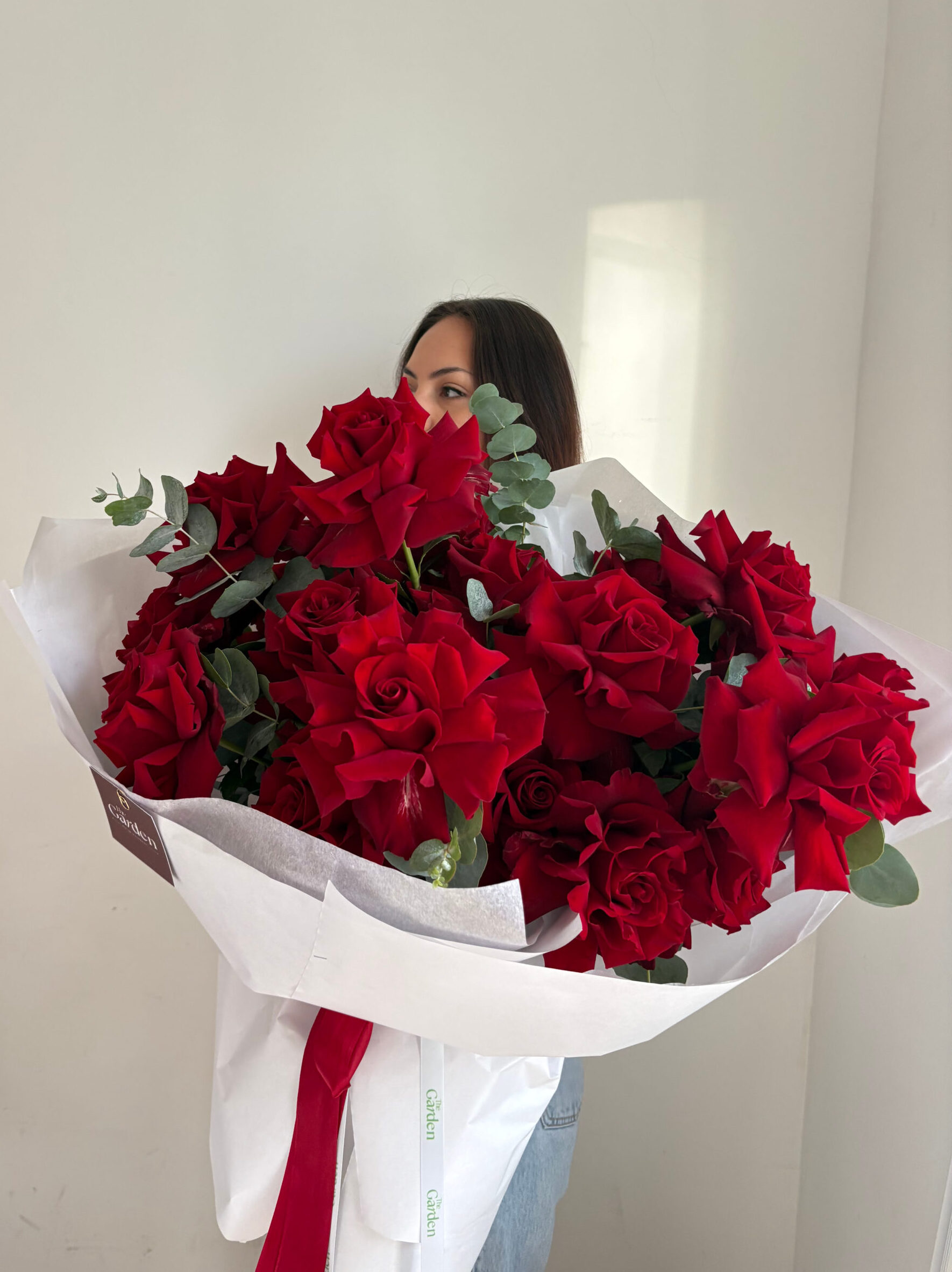 The bouquet embodies classic romance and modern luxury. Its structured form and generous volume make it ideal for anniversaries, romantic gestures, Valentine’s Day, and grand celebrations where impact matters.